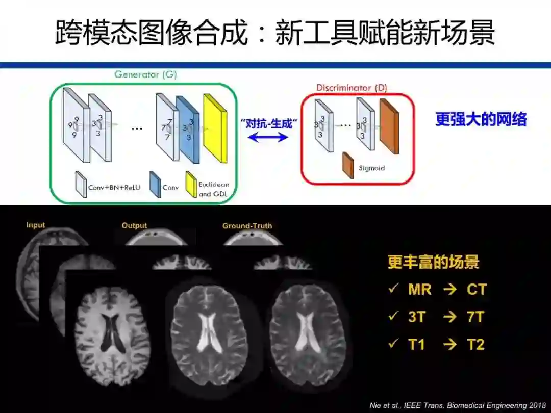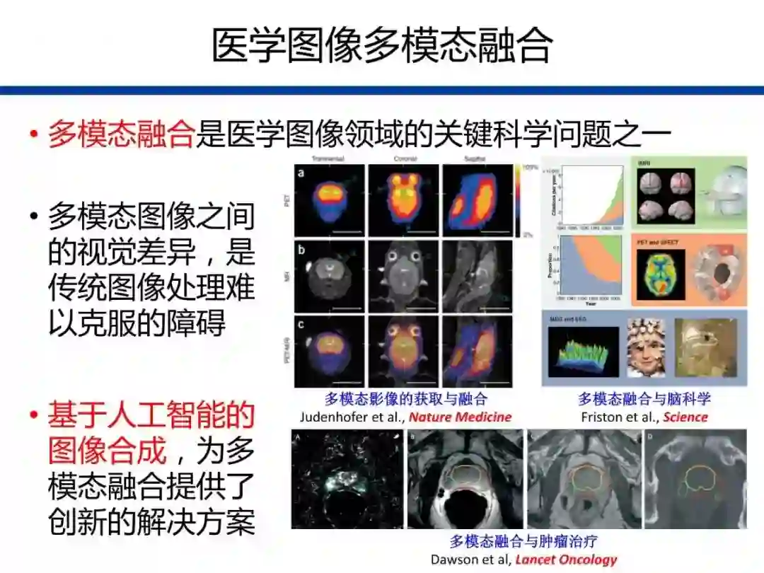多模态融合是医学图像领域的经典科学问题,是疾病精准诊断、治疗计划和评估等诸多应用的基础。通过机器学习方法构建适当的模型,可以对特定输入图像与输出图像之间的跨模态复杂映射编码。