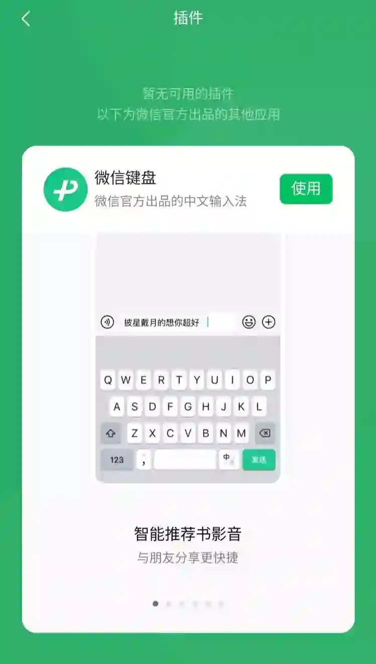 在最新版本的微信中,微信状态发生了改变。支持自定义填写状态词,包括使用自定义表情。插件页面颜色统一为微信绿。部分用户的插件中新增微信键盘下载 tips 提示,预示着微信键盘将成为独立 App,点击使用后会跳转到微信键盘,如果没有安装,会引导进行下载,这是微信官方出品的中文输入法。