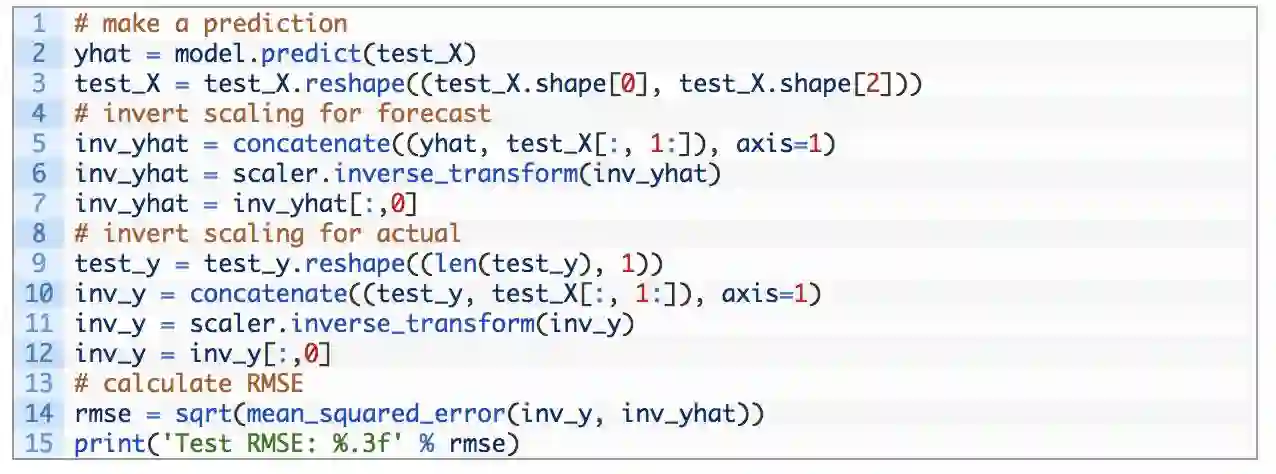 在本教程中,您学会了如何将 LSTM 应用于多变量时间序列预测问题。