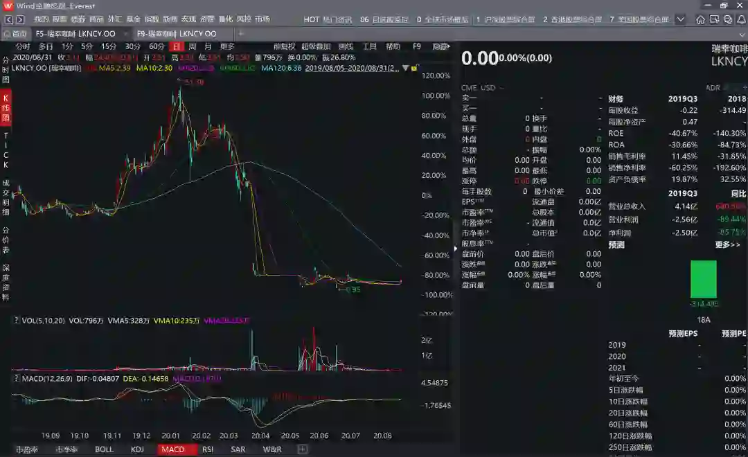 图2:瑞幸股价“瀑布流”连根拔起韭菜,来源:wind金融终端