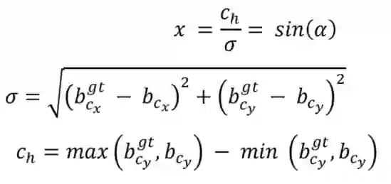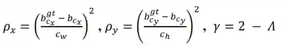 最近 Rezatofighi 等人声称Generalized IoU (GIoU) LF优于其他标准 LF 的最先进的目标检测方法。虽然这些方法对训练过程和最终结果都产生了积极影响,但作者认为仍有很大改进的空间。因此,与用于计算图像中真实框和模型预测框不匹配的惩罚的传统指标并行——即距离、形状和 IoU,本文作者建议还要考虑匹配的方向。这种添加极大地帮助了训练收敛过程和效果,因为它可以让预测框很快地移动到最近的轴,并且随后的方法只需要一个坐标 X 或 Y 的回归。简而言之,添加Angle惩罚成本有效地减少了损失的总自由度。
