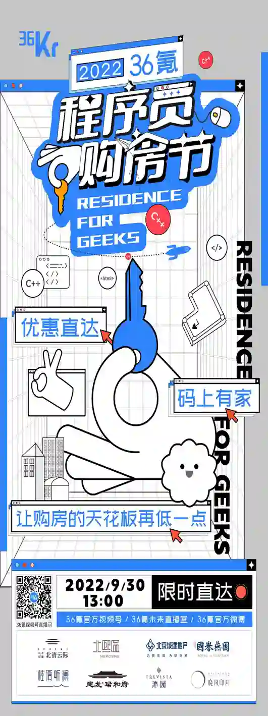 9月30日,36氪推出“程序员购房节”线上直播活动,参照程序员的选房标准,我们在全北京范围内精选出了7个优质楼盘,在直播间进行逐一讲解,覆盖每一个楼盘的区位优势、主力户型和价格区间。参与直播的项目还为本次活动带来了优惠福利。此外,整个直播的过程中还不定时会有红包掉落,拼手气的时候又到了。