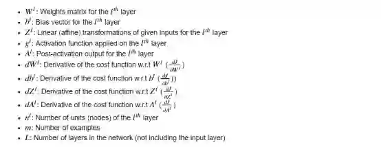 接下来,我们将以一般形式写下多层神经网络的维度,以帮助我们进行矩阵乘法,因为实现神经网络的主要挑战之一是使维度正确。