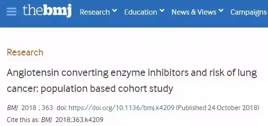 血管紧张素转换酶抑制剂(ACEIs)是一种被高血压患者广泛使用的药物。它是有效的,医生也认为短期服用这种药物是相对安全的。过去曾有研究表明,ACEI可能会增加癌症风险,包括现有的大多数此类研究只能获得相对较小的样本量或较短的研究时间,因此这些研究并不具备广泛的参考意义。