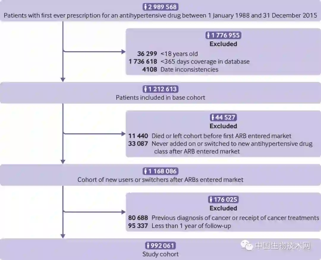 研究人员比较了开始服用ACEI和血管紧张素受体拮抗剂(ARB)这两种降压药物患者患肺癌的风险。