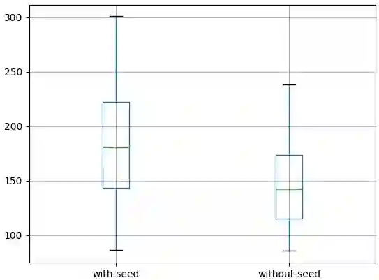 将这种方案预测的平均误差(146.6005050)和另一种方案(初始化状态种子)预测的平均误差(186.432143)做对比即可得出上结论。通过盒须图可以看得更加清楚。