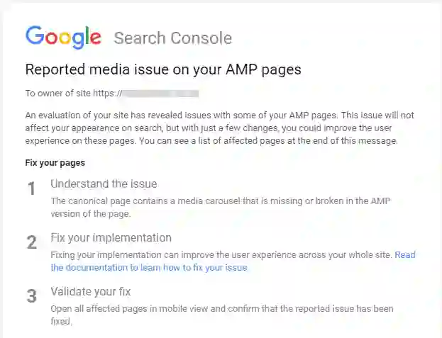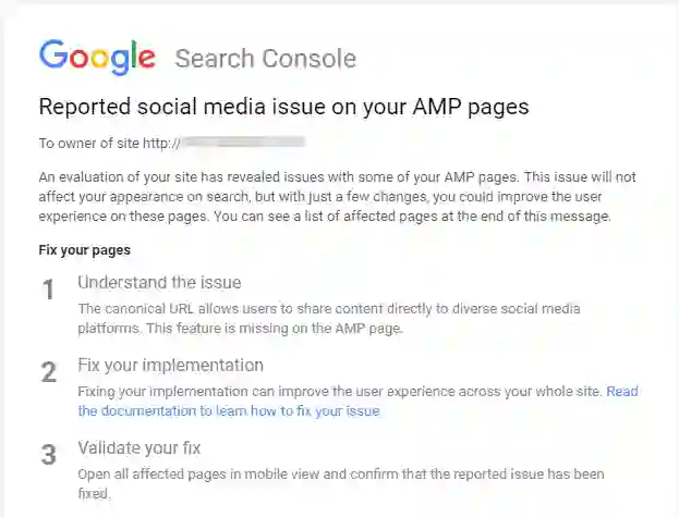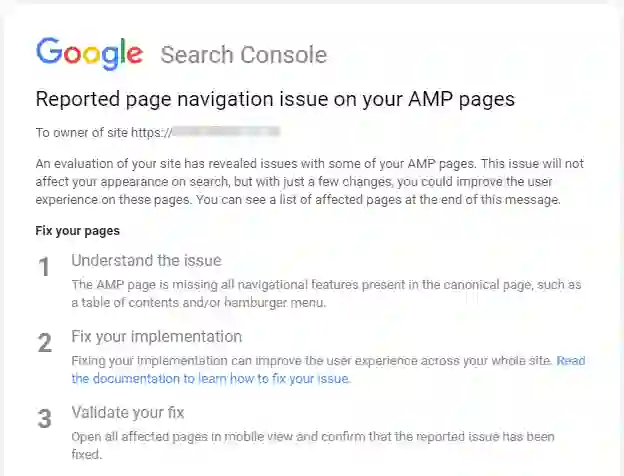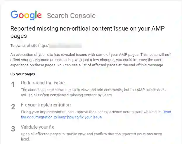 好好看看这些消息。这些都是Google在这些网站的AMP版本中发现的问题: