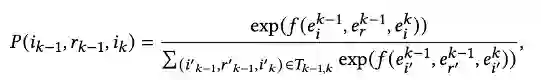 在每一跳,三元组从累积概率超过阈值的最小可能的三元组中选择,其中累积概率是通过对三元组的概率分数求和来计算的,采样的三元组的数量可以根据概率分布动态增加或减少,为了进行核采样,三元组分数被归一化用来计算三元组的概率。