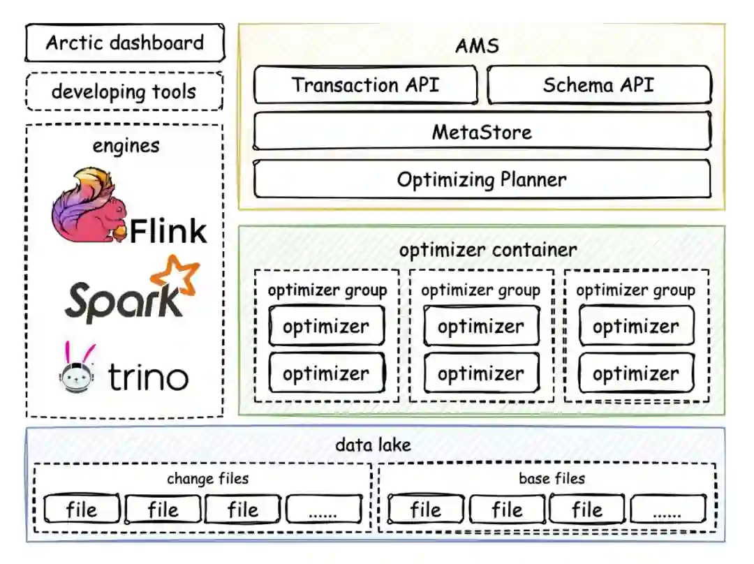 根据介绍,Arctic 有 AMS、optimizer 和 dashboard 三个组件,其中 AMS 和 optimizer 是核心。