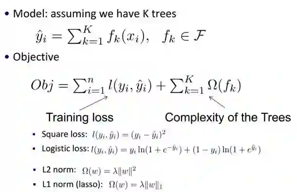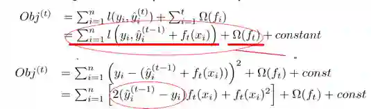 Xgboost相比于GBDT来说,更加有效应用了数值优化,最重要是对损失函数(预测值和真实值的误差)变得更复杂。目标函数依然是所有树的预测值相加等于预测值。