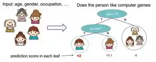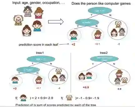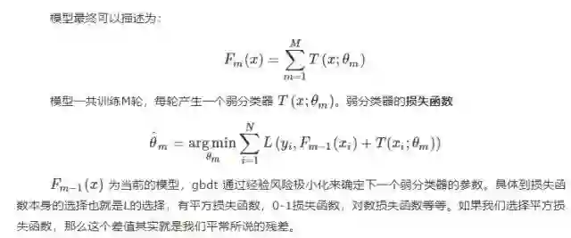 GBDT的核心就在于:每一棵树学的是之前所有树结论和的残差,这个残差就是一个加预测值后能得真实值的累加量。比如A的真实年龄是18岁,但第一棵树的预测年龄是12岁,差了6岁,即残差为6岁。那么在第二棵树里我们把A的年龄设为6岁去学习,如果第二棵树真的能把A分到6岁的叶子节点,那累加两棵树的结论就是A的真实年龄;如果第二棵树的结论是5岁,则A仍然存在1岁的残差,第三棵树里A的年龄就变成1岁,继续学习。