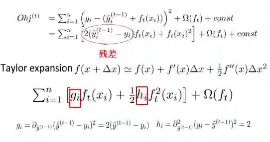 目标函数如上图,最后一行画圈部分实际上就是预测值和真实值之间的残差