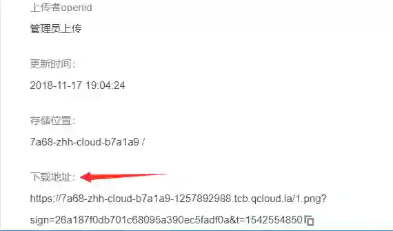 除此之外,它还会将你所上传的资源自动进行压缩操作,并生成一个地址供你引用。该项目中的一些图片资源就是存在于此,然后在云数据库的字段中引用这些资源地址即可,十分方便,不必在本地存储,占用小程序内存: