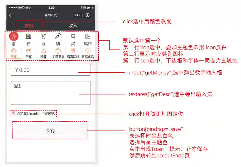 因为收入与支出页面基本类似,所以使用自定义组件封装,可以复用,具体看源码。