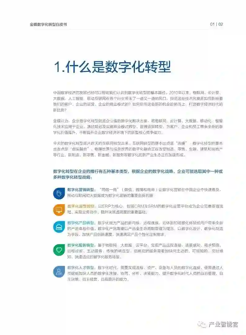 金蝶认为,企业数字化转型就是企业借助数字化解决方案,将物联网、云计算、大数据、移动化、智能化技术应用于企业,通过规划及实施商业模式转型、管理运营转型,为客户、企业和员工带来全新的数字化价值提升,不断提升企业数字经济环境下的新型核心竞争能力。