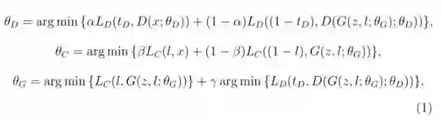 l 是样本x的二进制表示,并且是发生器的输入数据,同时还作为鉴别器和分类器的参数。