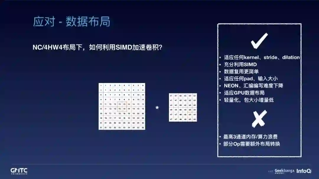 但是,NCHW 布局下,无法充分利用 SIMD 进行加速,同时,实现优化分支越多,占用包大小也就越多。