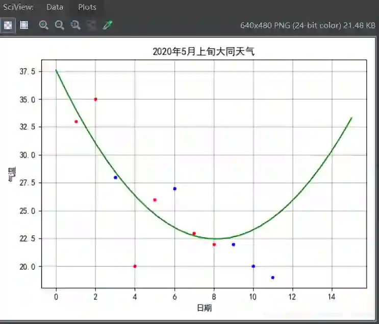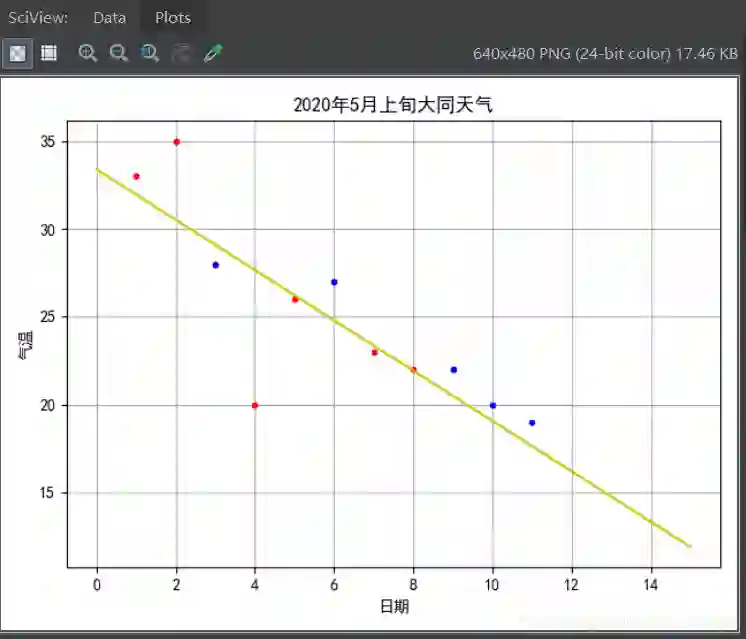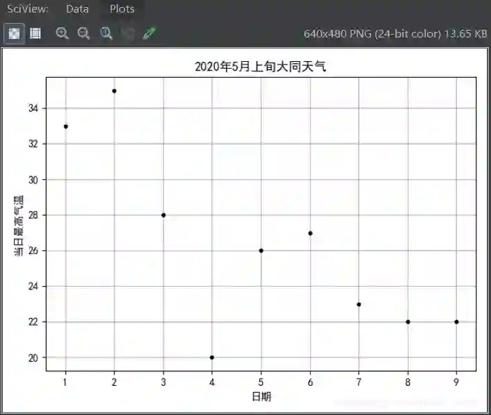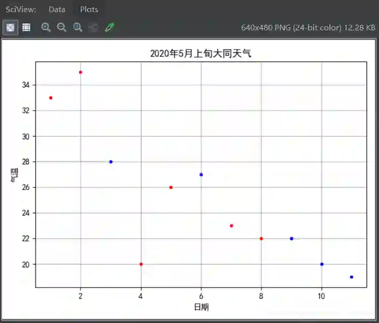 plt.ylabel('气温',fontsize=10) # y轴显示“气温”,字体大小设置为10