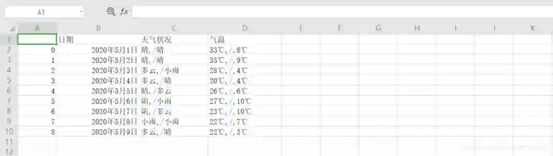 data_5_month = get_data('http://www.tianqihoubao.com/lishi/datong/month/202005.html')
