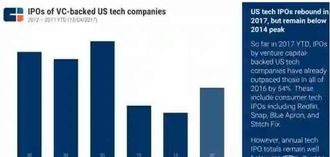 2017年科技板风投较2016年的低迷呈复苏趋势,百万级交易(mega-rounds)回暖,Stitch Fix、SendGrid、MongoDB、Okta、Cloudera、Snap和Roku等企业决定上市,人工智能、自动驾驶等热点不断。