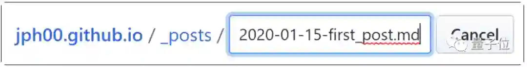 所有的文章都会放在_posts文件夹中。单击它,然后单击创建文件按钮,创建一个新的文件。文件名命名的格式是:year-month-day-name.md,其中year是四位数,而month和day是两位数。“name”可以自定义,扩展名md则用于Markdown。