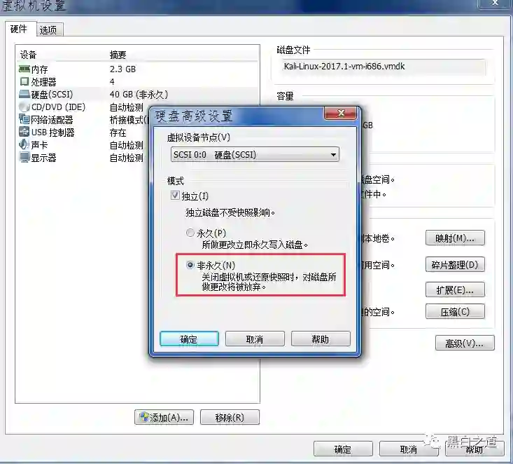 将硬盘设置为 独立-> 非永久,一定要记得,重要数据提前备份好,莫怪我没提醒,一旦关机,砸电脑也于事无补,已经不想再说被伤过多少次了,希望大家千万别再踏我踏过的坑,有些代价实在承受不起