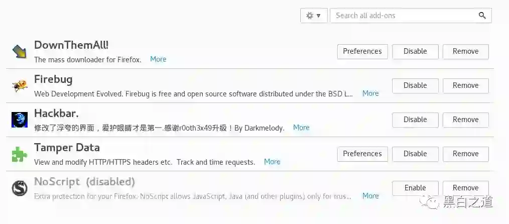 0x12 现在该配置下浏览器了,把浏览器上的各种图标能隐藏起来的都隐藏起来吧乱七八糟的图标占地方,越简洁越好,反正我们要看的是主体内容,平时用不到的一些功能尽量把它都收起来,省的占页面,浏览历史设置为,从来不记住,burpsuite的默认代理也提前设置好,另外再安装一些常用的插件,仍然只是随便给几个参考,大家平时喜欢用什么装什么即可