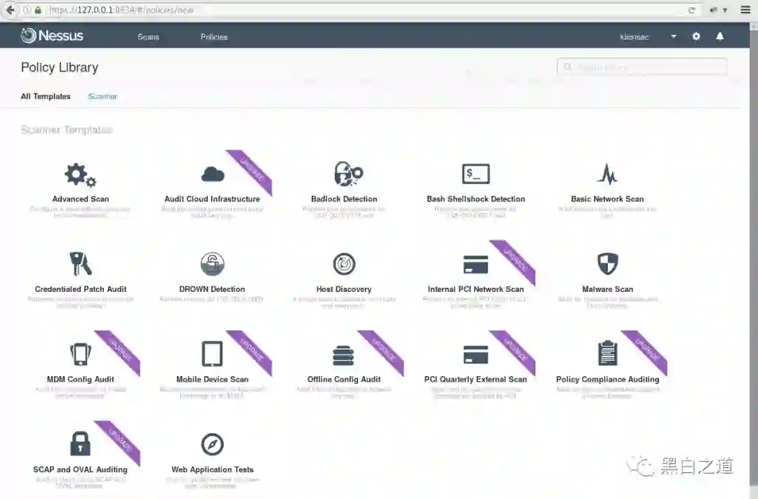 而后访问 https://127.0.0.1:8834 它会进行一些简单的初始化操作,如,创建登录用户,输入激活码,最后下载更新数据,跳出登录界面,进入nessus控制台,注意浏览器在此时不要使用使用代理,否则会更新出错,如果更新出错,可再使用下面的命令手动更新: