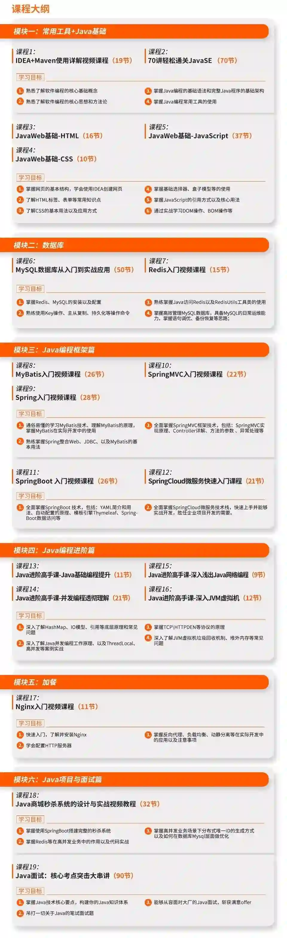 如果你还犹豫,不妨看一下大纲,感受一下课程的扎实程度: