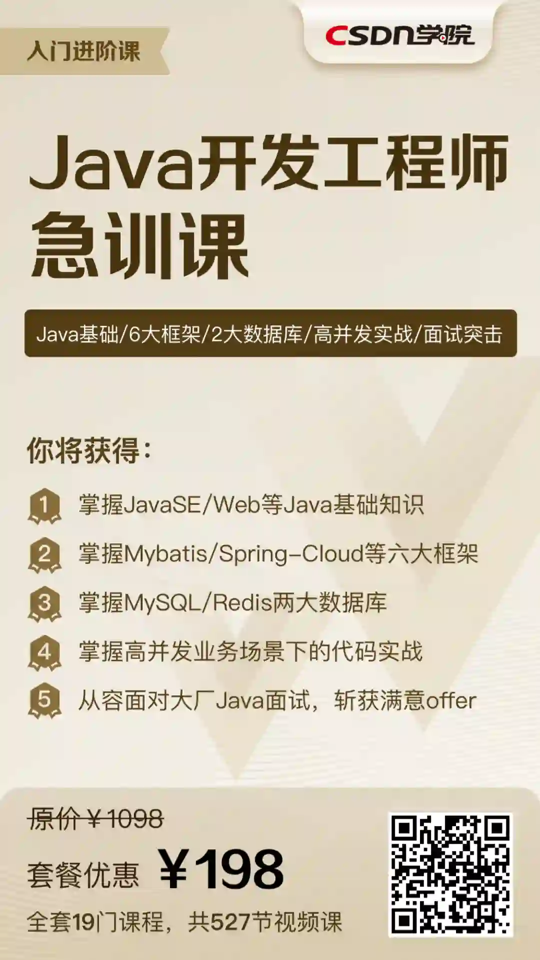 为了帮很多对Java感兴趣的同学快速掌握Java知识体系,具备Java实战经验,破解Java面试难题,CSDN联合6位大厂一线Java工程师,共同打造了这门<Java开发工程师急训课>。