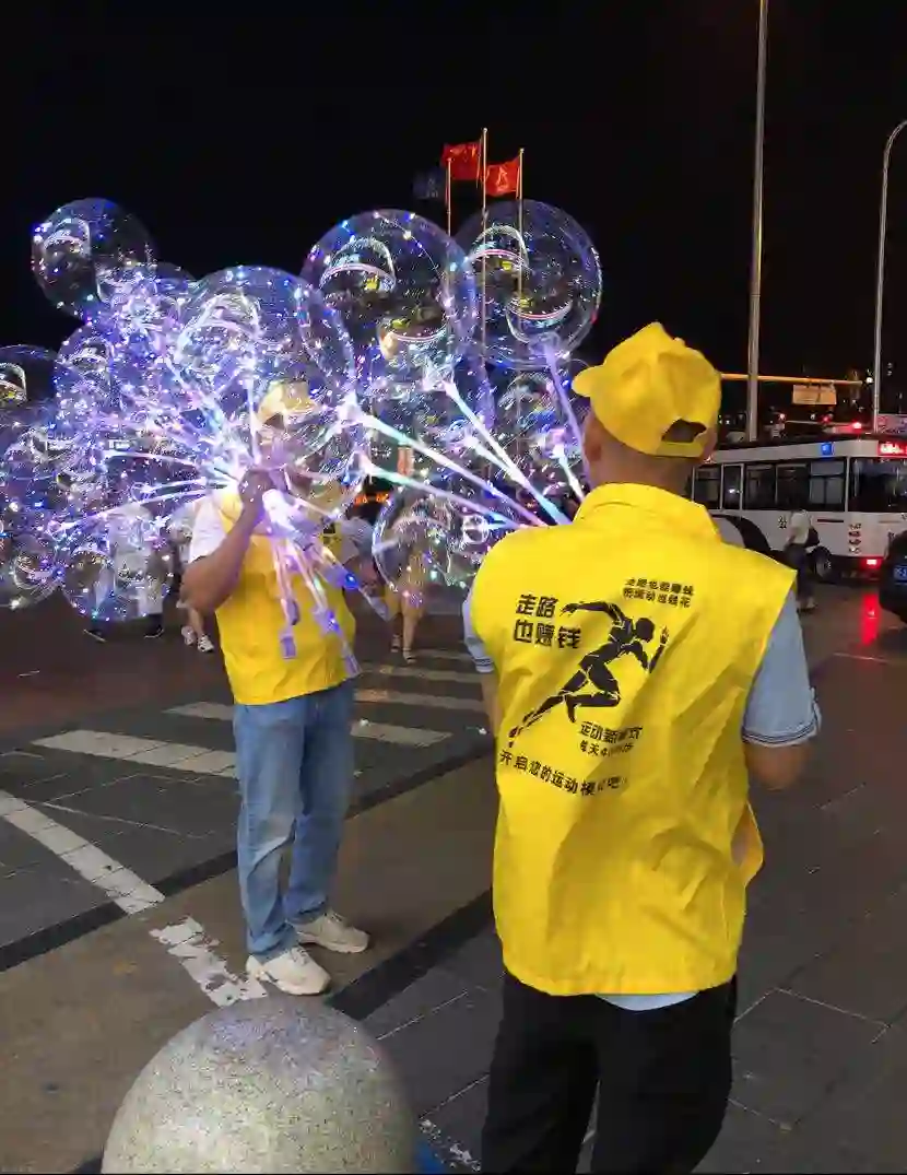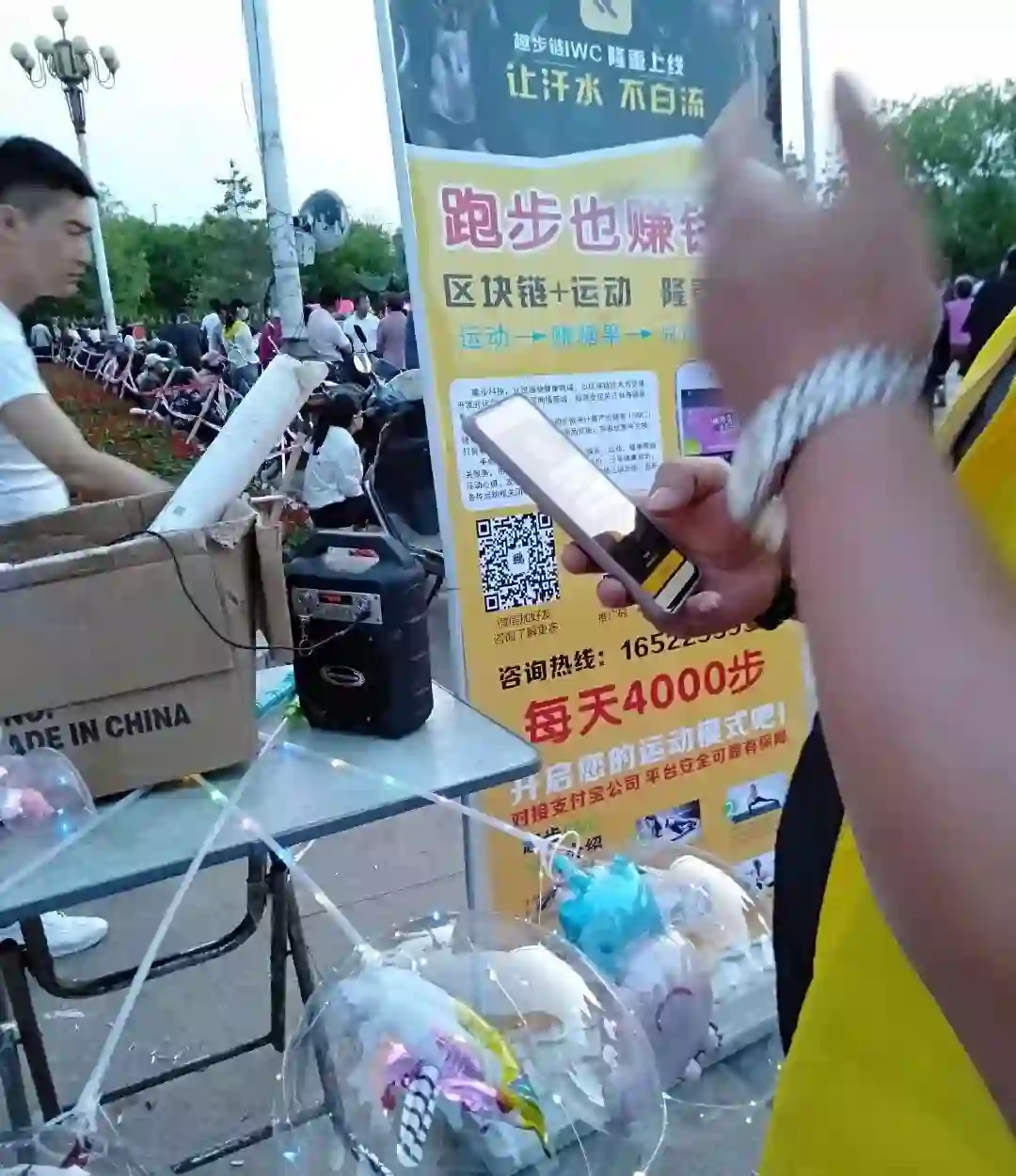 就在写这篇稿子的时候,一位同事在北京双桥商超门口,人口最拥挤的地方,亲眼目睹并感受了趣步的推销方式:走路就能赚钱,注册APP,送炫酷气球...