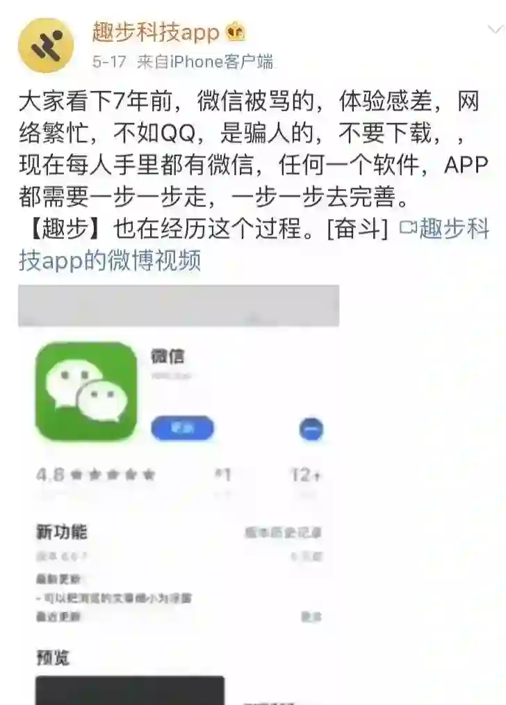 时不时还在微博发表些反驳:微信也是这样一步步走过来的。
