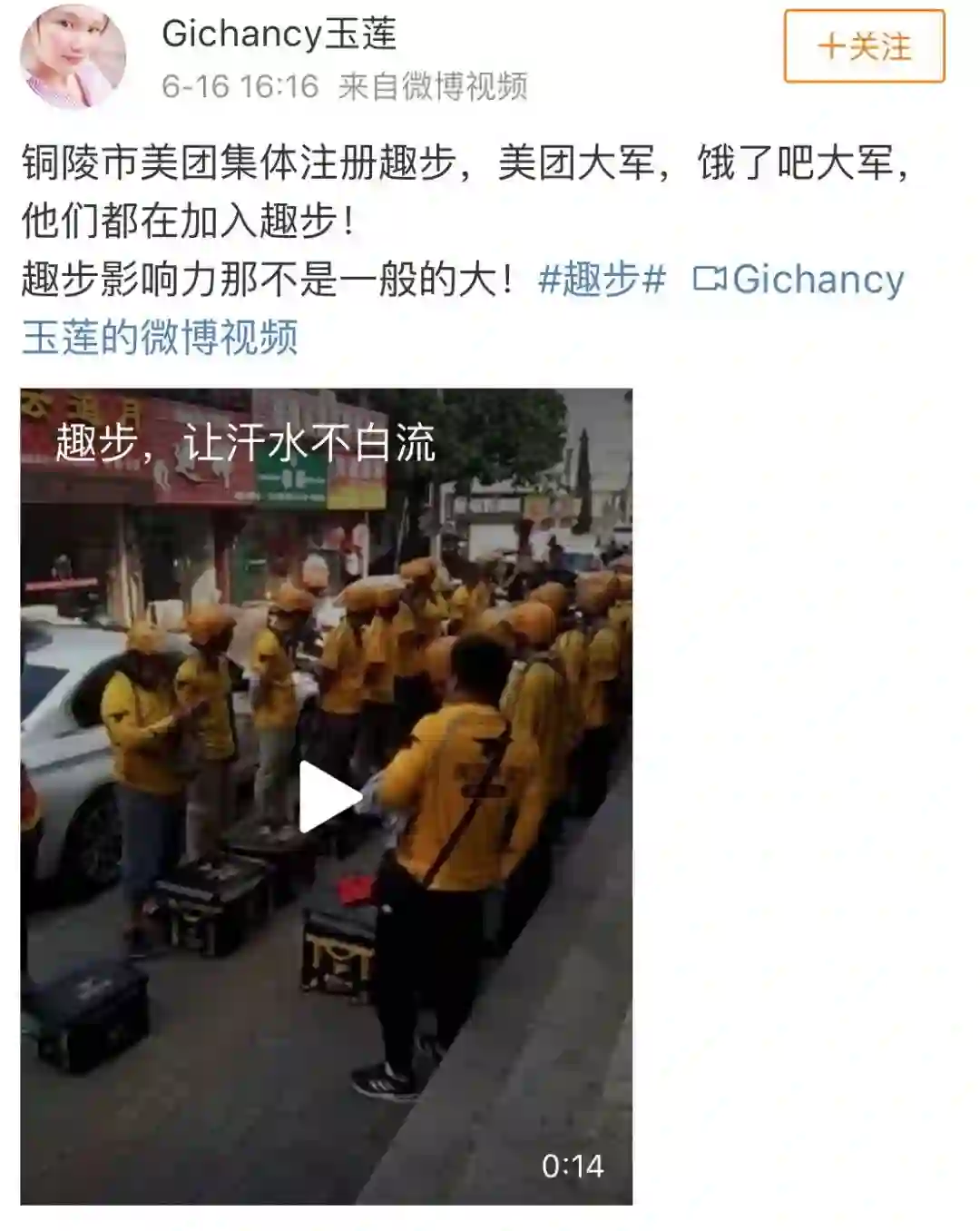 打开微博发现,铜陵市美团的外卖小哥们集体注册了趣步...