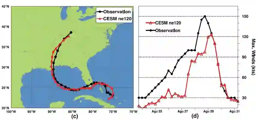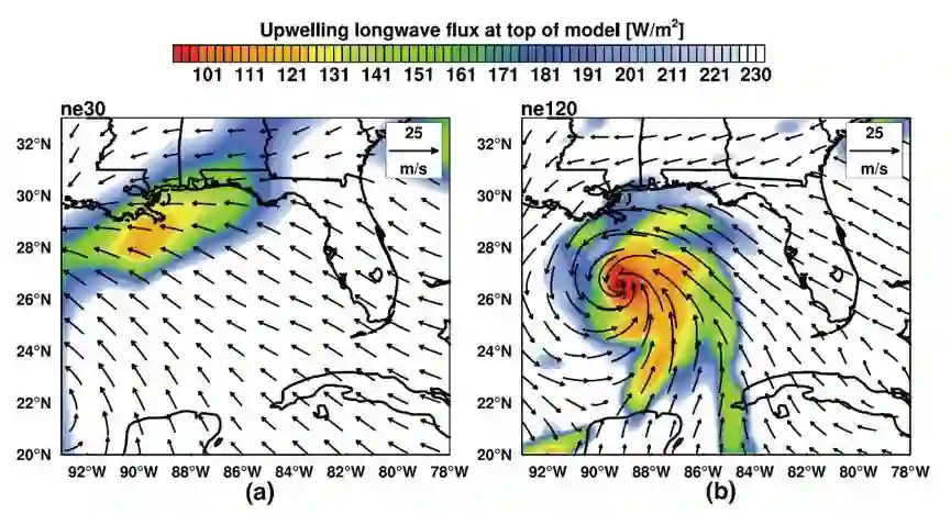 针对这些挑战,由清华大学、北京师范大学和山东大学组成的联合研究团队,根据神威太湖之光超级计算机的系统特点,设计了从进程到线程的一整套优化方案,并对具有海量代码任务的经典大气模式CAM进行了重构设计,将其成功移植到了国产平台上,实现了千万核规模下25公里分辨率的模拟和每天3.4模式年的计算性能;对于模式的动力框架部分,更是实现了千万核规模下750米的分辨率能力,以及3.3PFlops的计算性能。基于该工作的研究成果,研究团队实现了对卡特里娜飓风整个生命周期的准确模拟。作为对真实应用的大规模数值模拟,该工作的成功完成对于未来面向E级(百亿亿次)计算系统的应用发展具有重要借鉴意义,并在程序设计、优化方法等方面提供了宝贵的经验。