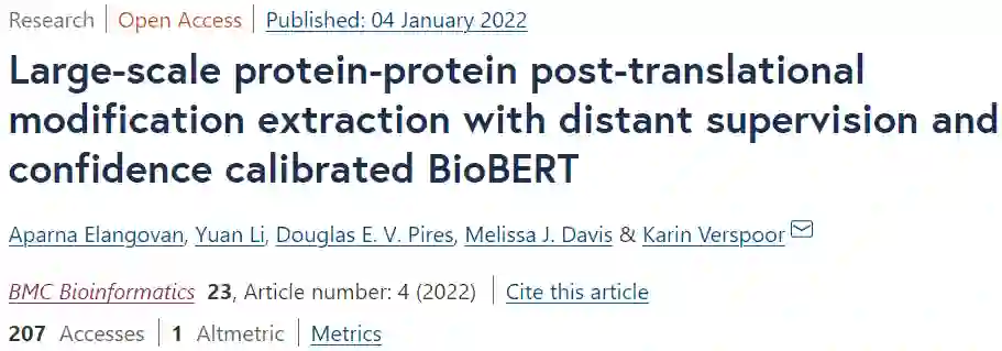 该研究以「Large-scale protein-protein post-translational modification extraction with distant supervision and confidence calibrated BioBERT」为题,于 2022 年 1 月 4 日发布在《BMC Bioinformatics》。