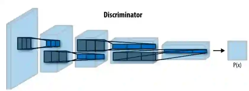 鉴别器网络由三个卷积层组成,相对于原始架构中的四个卷积层。我们将删除最后一层来简化模型。通过这种方式,训练会进行得更快,而且不会损失太多的质量。对于网络中的每一层,我们要进行卷积,然后我们还要进行批标准化,以使网络更快,更准确,接着,我们要进行Leaky RELU进一步加快训练。最后,我们将最后一层的输出变平,并使用sigmoid激活函数来获得分类。这样我们就会获得一个可以预测图像是否是真实的网络。