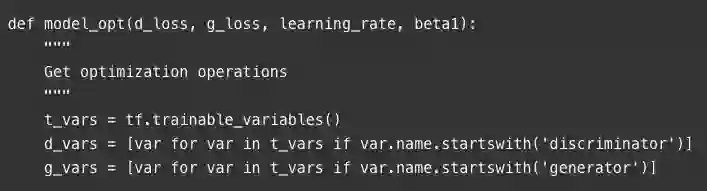 我们需要定义三个损失函数,而不是仅具有单个损失函数:发生器的损失函数,使用真实图像时鉴别器的损失函数,以及使用假图像时鉴别器的损失函数。假图像和真实图像损失的总和理应是整体鉴别器损失。