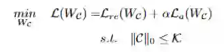 考虑到重建误差,辅助网络的定位感知损失,可以指定通道剪枝的规则如下: