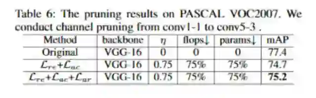 论文中提出的方法将基于VGG-16的SSD剪枝掉了75%的参数。