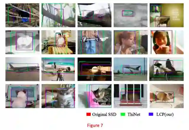 此外,当修剪比率为0.7时,ThiNet优于DCP,这表明在分类模型上剪枝进行目标检测不是最佳方法。