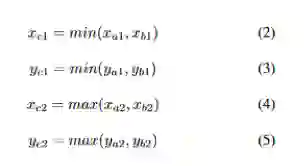 首先,利用公式(1)计算A和B的交并比(IOU):
