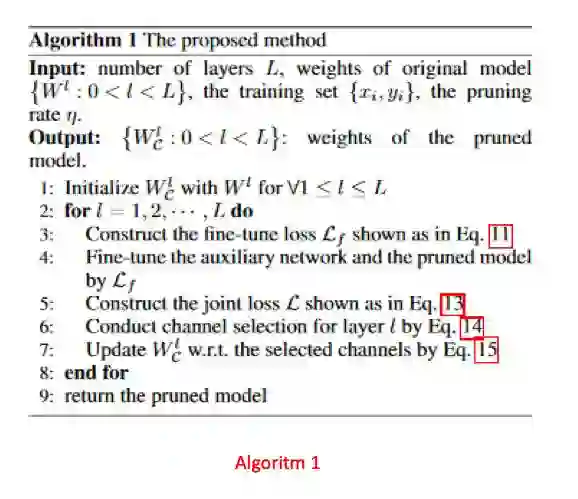 为了找到对网络最有效的通道,应该对辅助网络和剪枝网络进行微调,并将微调后的损失定义为它们的损失之和,即: