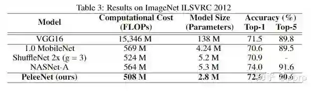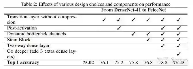 总体来说,PeleeNet创新程度一般,但是作者团队工程能力很强,实验非常丰富。PeleeNet将很多细碎的点融合到一起,最终在移动端设备上的表现还不错,也被很多研究轻量化网络的文章用来对比。