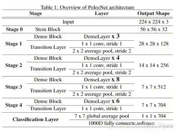 PeleeNet实际上是DenseNet的变体,使用的依然是DenseNet的连接方法,核心的设计原则也和DenseNet相仿(特征重用)。
