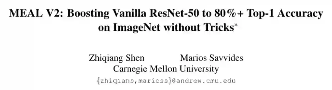 具体而言,MEAL 在每次训练迭代的时候会通过一个 teacher 选择模块随机选择一个teacher产生监督信号,而在 V2 中,这个模块被替换成所有 teacher 的集成,因此每次迭代 student 接收到的监督信号将会更加强大。同时,V2 简化了 V1 里面的中间层 loss,只保留最后一个 KL-loss 和辨别器,使得整个框架变得更加简单,直观和易用。