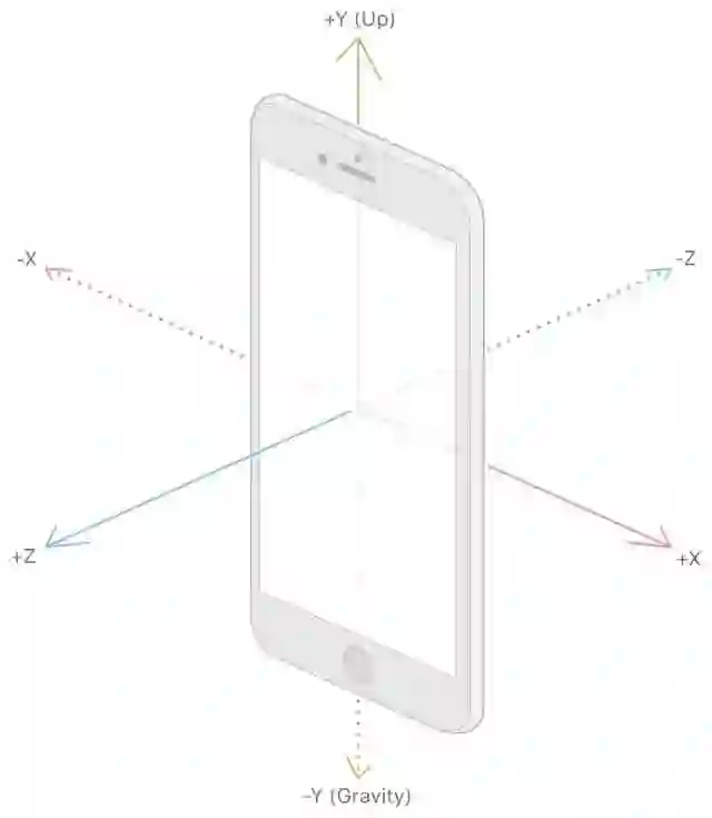 在ARKit的虚拟世界中,使用了和陀螺仪一致的右手系,如下图所示。