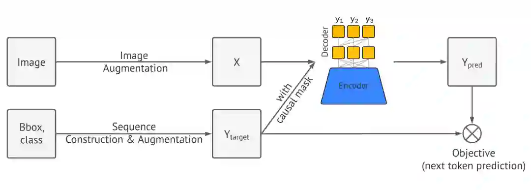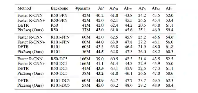 这就很有意思了朋友们!因为这是一个很一般化的范式!也就是说,不光是目标检测,我们 可以把语言作为中介接口,尝试将一切视觉上的任务映射为序列任务。这颇有点通用人工智能的意思。
