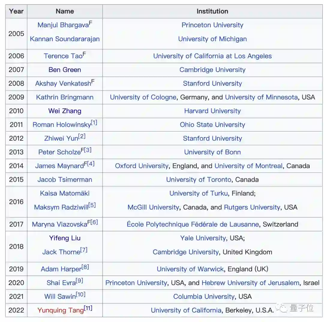 除此之外,还有像陶哲轩、今年菲尔兹奖得主詹姆斯·梅纳德等都曾斩获此奖。拉马努金奖自2005年开设以来,已有6位获奖人获得了菲尔兹奖。