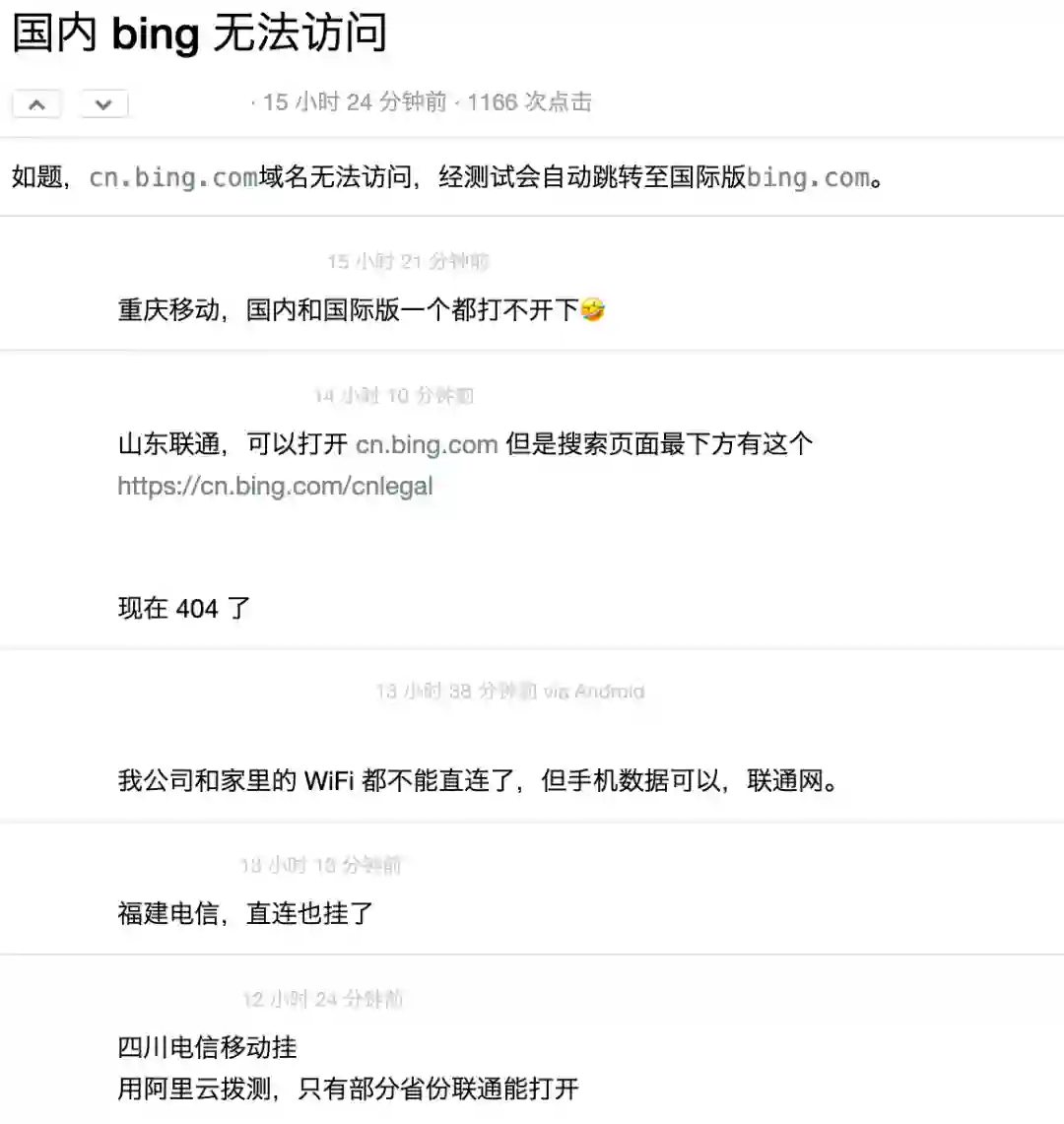 有网友表示,公告早在星期一的时候就已经有了,和无法访问必应没有必然联系。据推测,应该是服务器或运营商的问题导致。