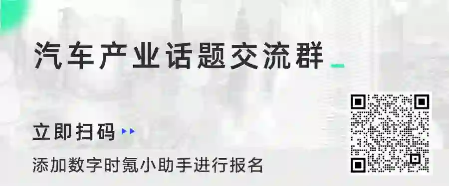 我们正在建设「汽车产业」话题交流社群,欢迎扫码添加数字时氪小助手,并发送名片或者个人介绍,我们将为您持续推荐相关产业信息和活动。